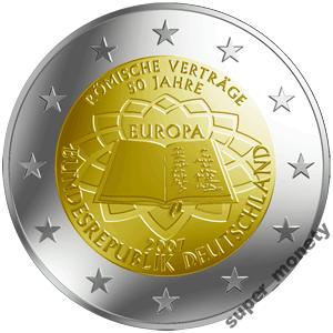 Traktat Rzymski ustanowił Europejską Wspólnotę Gospodarczą, co w rezultacie doprowadziło do powstania euro jako waluty w 1999 r. oraz wprowadzenia banknotów i monet euro do obiegu gotówkowego w 2002 r. Rocznica podpisania traktatu przypada 25 marca 2007 r. Kraje strefy euro postanowiły upamiętnić ten dzień wspólną emisją monety okolicznościowej. Wzór monety został wyłoniony w konkursie zorganizowanym przez mennice europejskie.