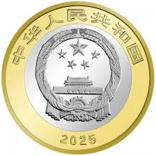 Na awersie przedstawiono herb Chińskiej Republiki Ludowej – pięć gwiazd symbolizujących jedność narodu, nad stylizowanym wejściem do Zakazanego Miasta. Kompozycję otacza inskrypcja „中華人民共和國” (Chińska Republika Ludowa), a u dołu widnieje rok emisji 2025. Kolorystyczny kontrast dwumetalicznego krążka dodatkowo podkreśla oficjalny i państwowy charakter monety.