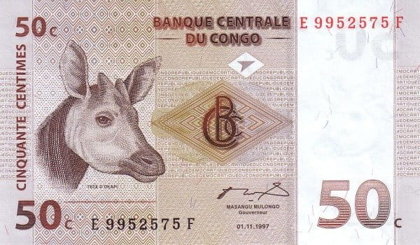To banknot szczególnie ceniony przez kolekcjonerów tematycznych, zwłaszcza miłośników motywów fauny. Okapi, często nazywane „leśną żyrafą”, stało się jednym z symboli Konga i rzadko pojawia się na banknotach innych państw, co zwiększa atrakcyjność tej emisji. Nominał 50 centymów był krótko w obiegu i szybko stracił znaczenie w codziennych transakcjach, dzięki czemu dziś stanowi interesujący dokument epoki niestabilności monetarnej końca XX wieku.