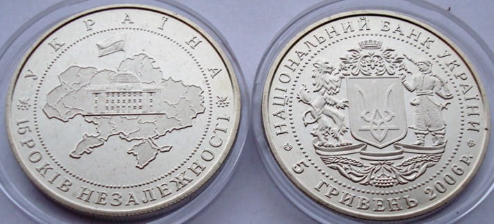 UKRAINA 5 UAH 15 lat niepodległości 2006