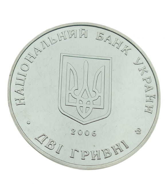 Awers: Na środku mały herb państwowy Ukrainy. Pod nim rok wydania 2006. Dookoła monety napisy: НАЦІОНАЛЬНИЙ БАНК УКРАЇНИ, 2 ГРИВНІ, znak mennicy NBU.