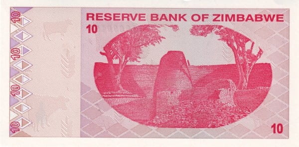 Zimbabwe 10 dolarów Ruiny 2009 P-94